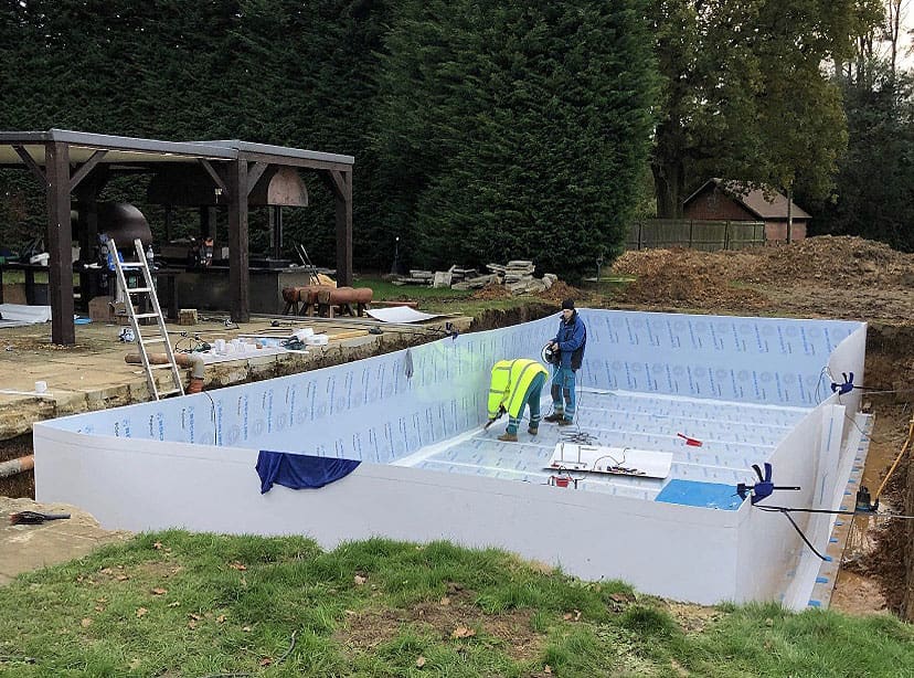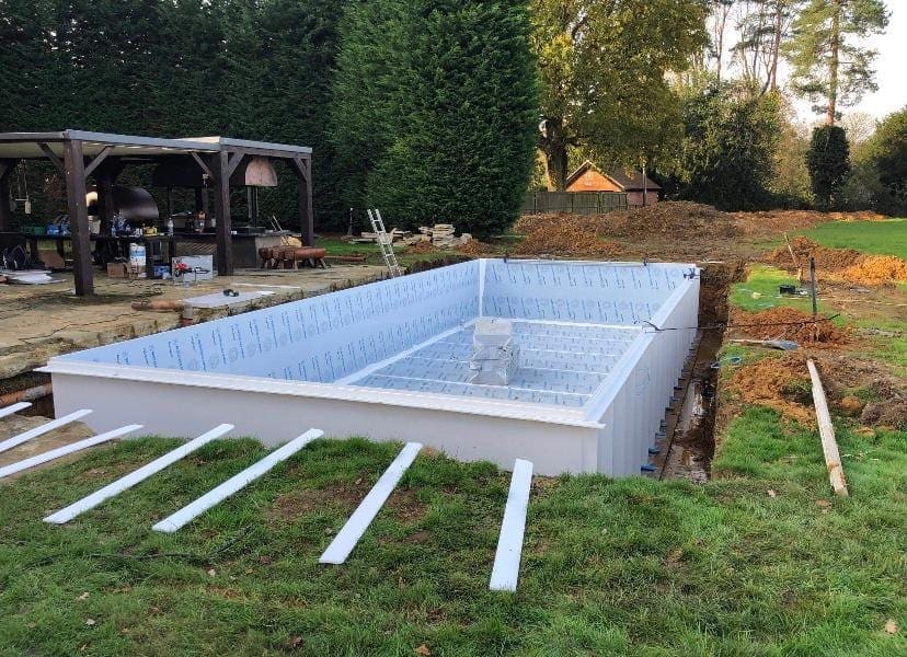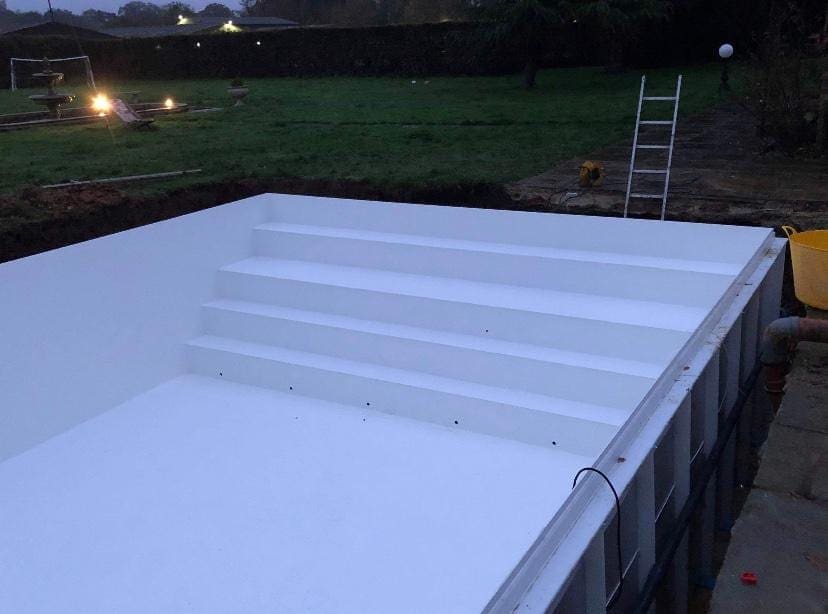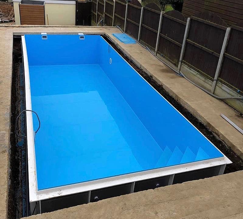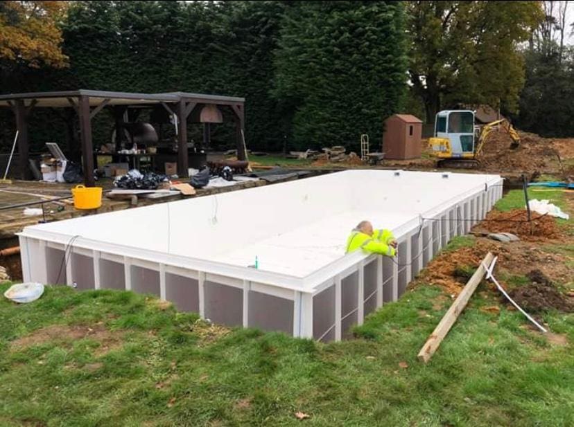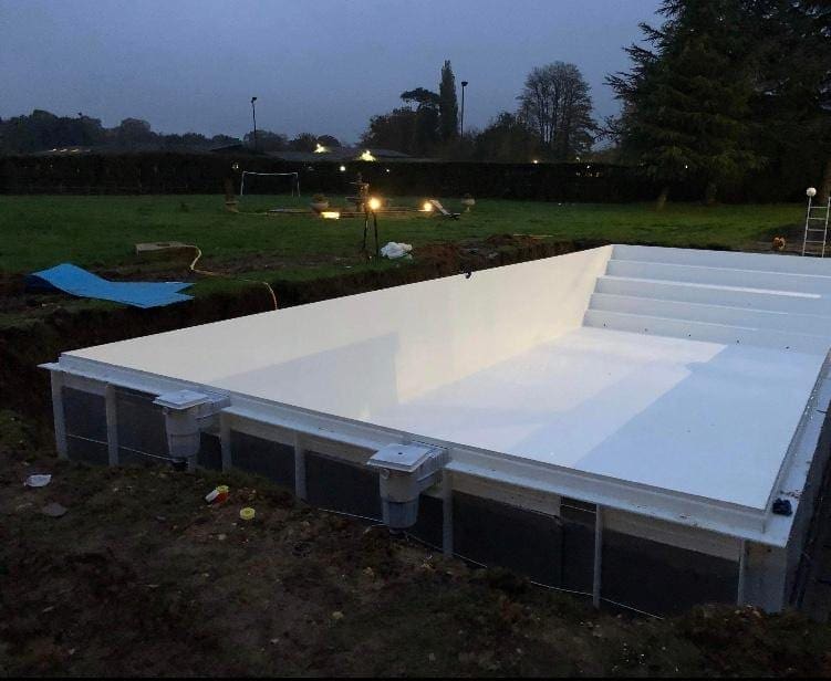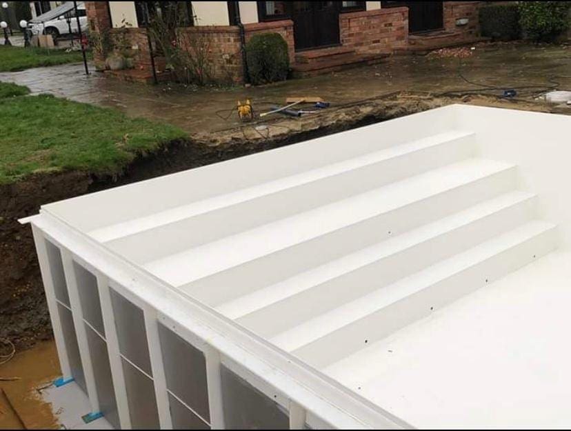 We can now offer an extra-large or custom-designed Dura Polymer Swimming Pool to be built on-site – in your back garden, no matter its size. Our team will arrive on-site once we have delivered all of the pool materials, they will then start to build the pool from the ground up within the excavated hole.
