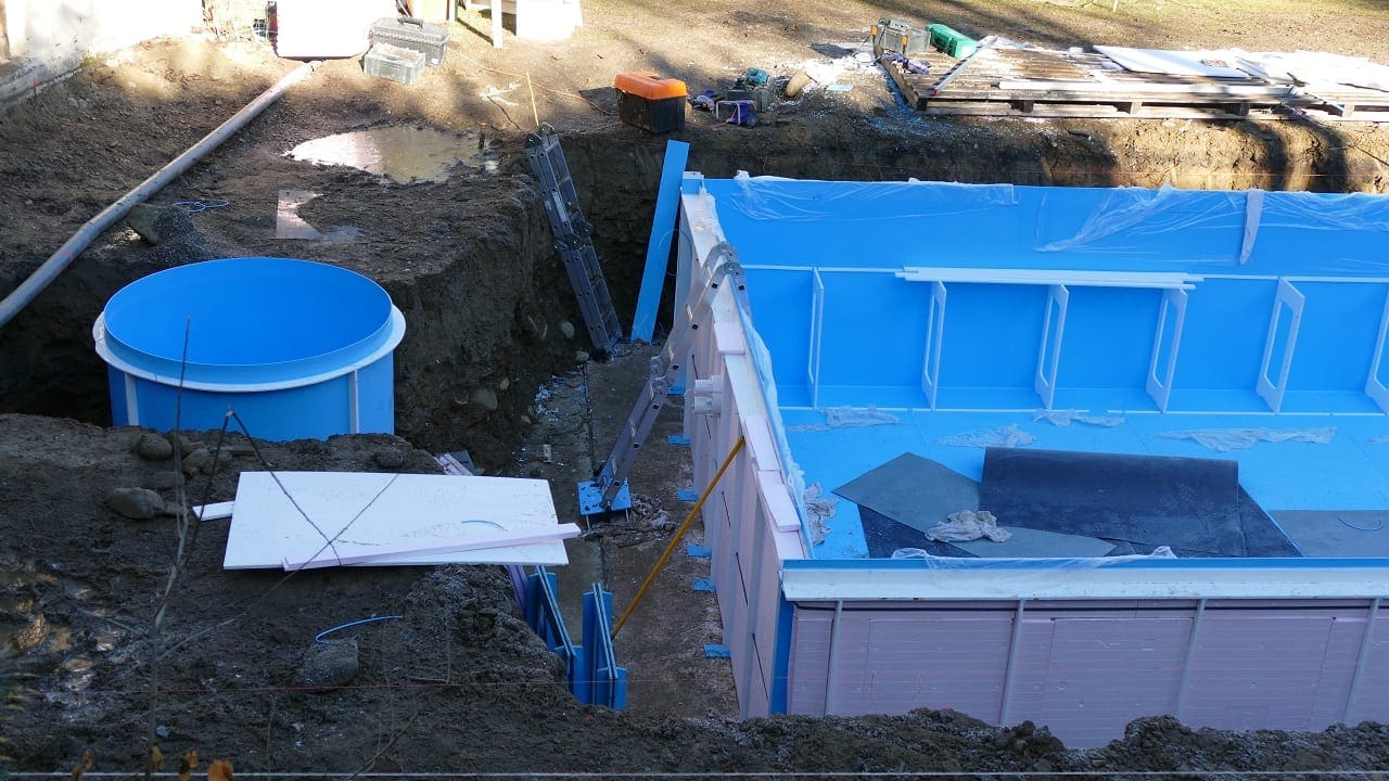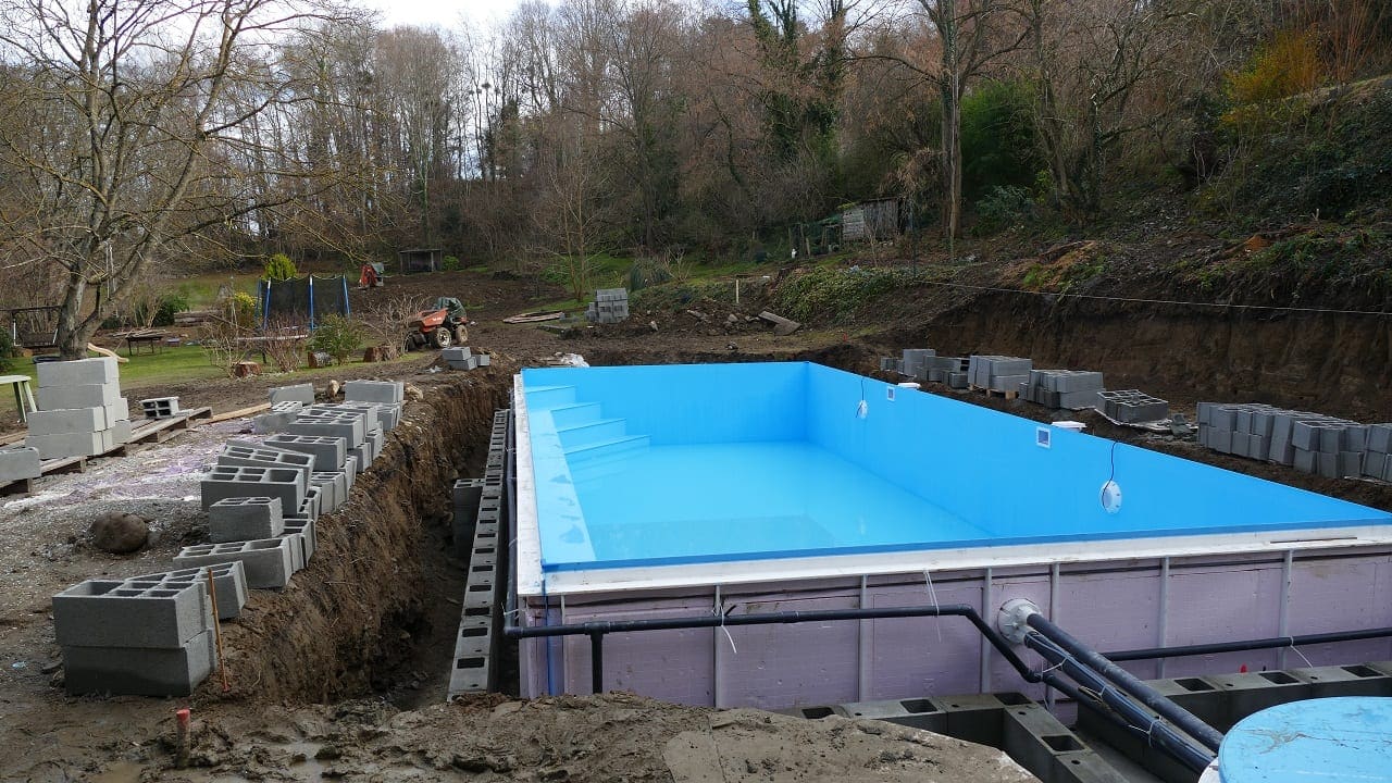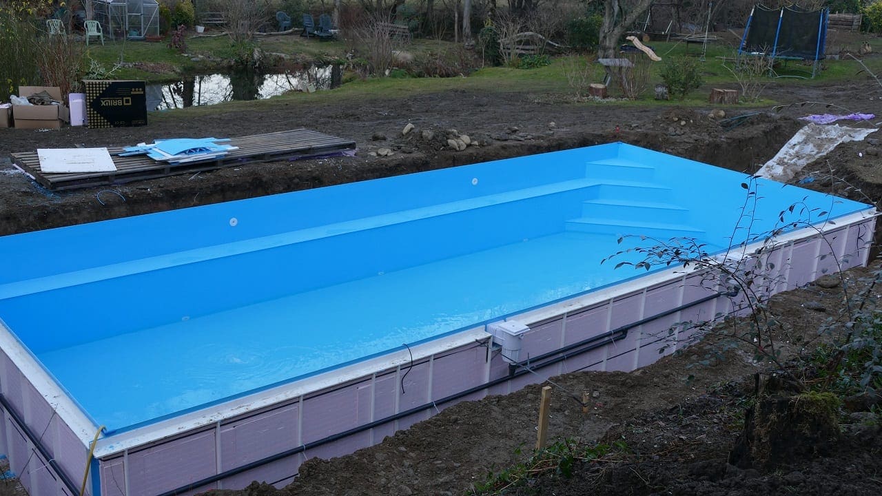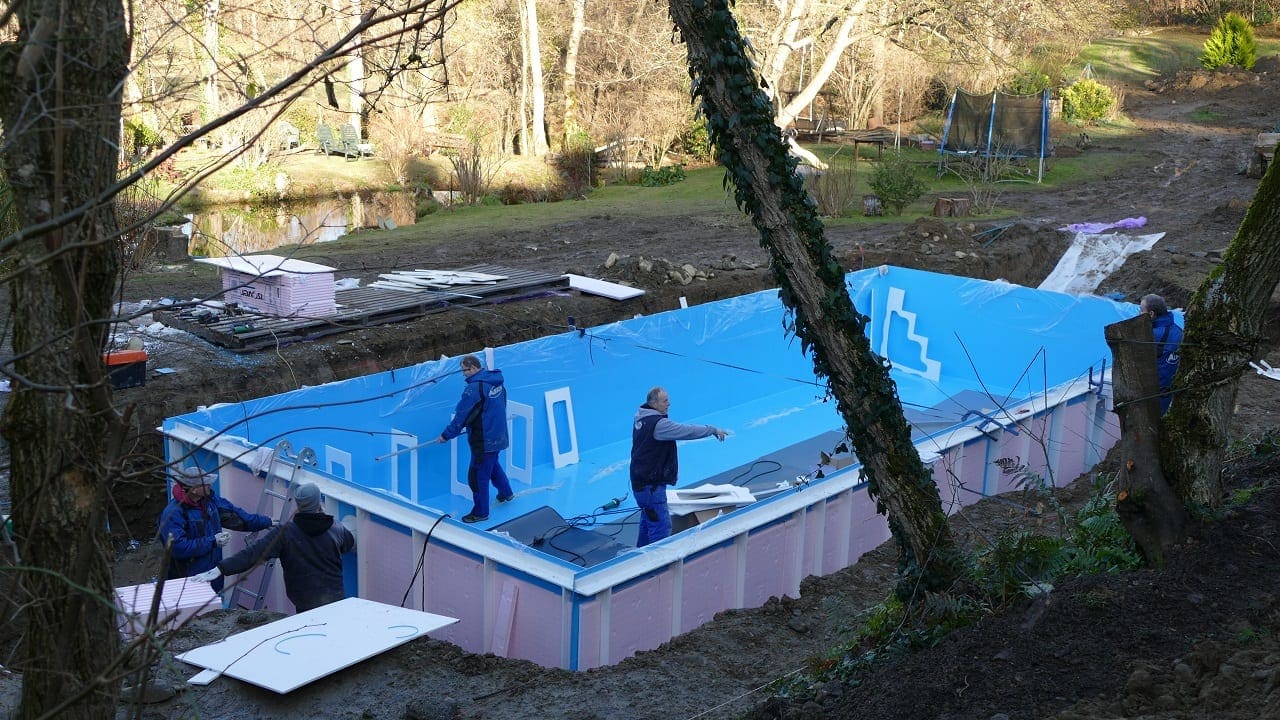 We can now offer an extra-large or custom-designed Dura Polymer Swimming Pool to be built on-site – in your back garden, no matter its size. Our team will arrive on-site once we have delivered all of the pool materials, they will then start to build the pool from the ground up within the excavated hole.