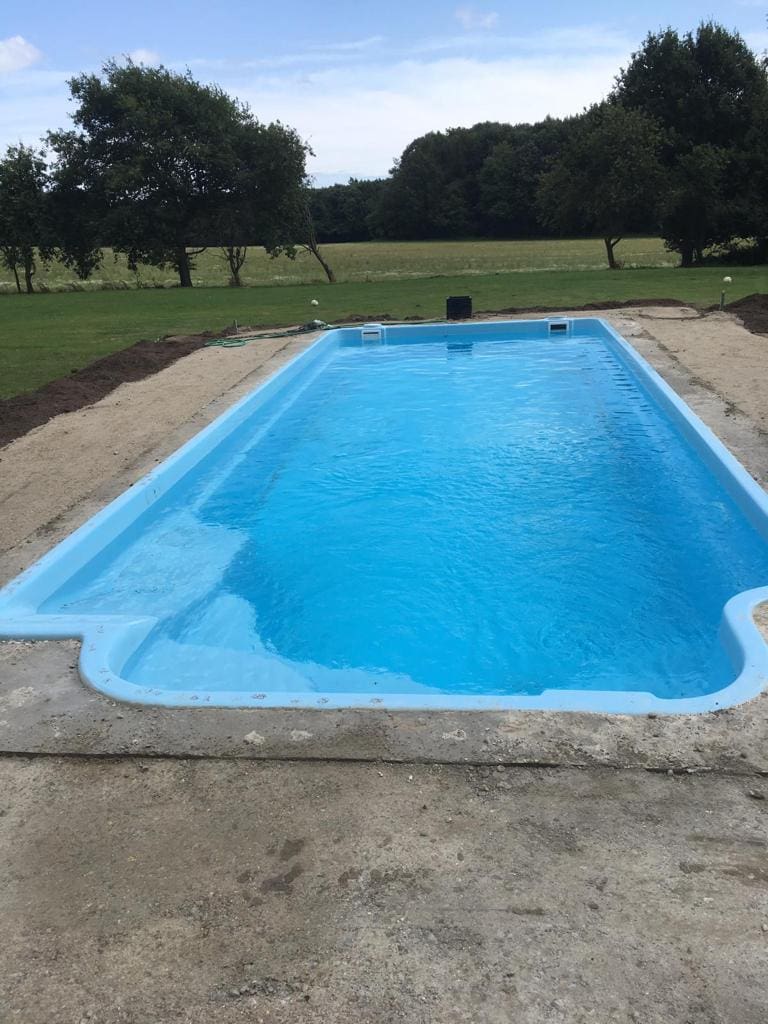 After browsing the larger range of pools, he decided on the Kefalina pool in plain blue. The pool came complete with all of the filtration equipment.